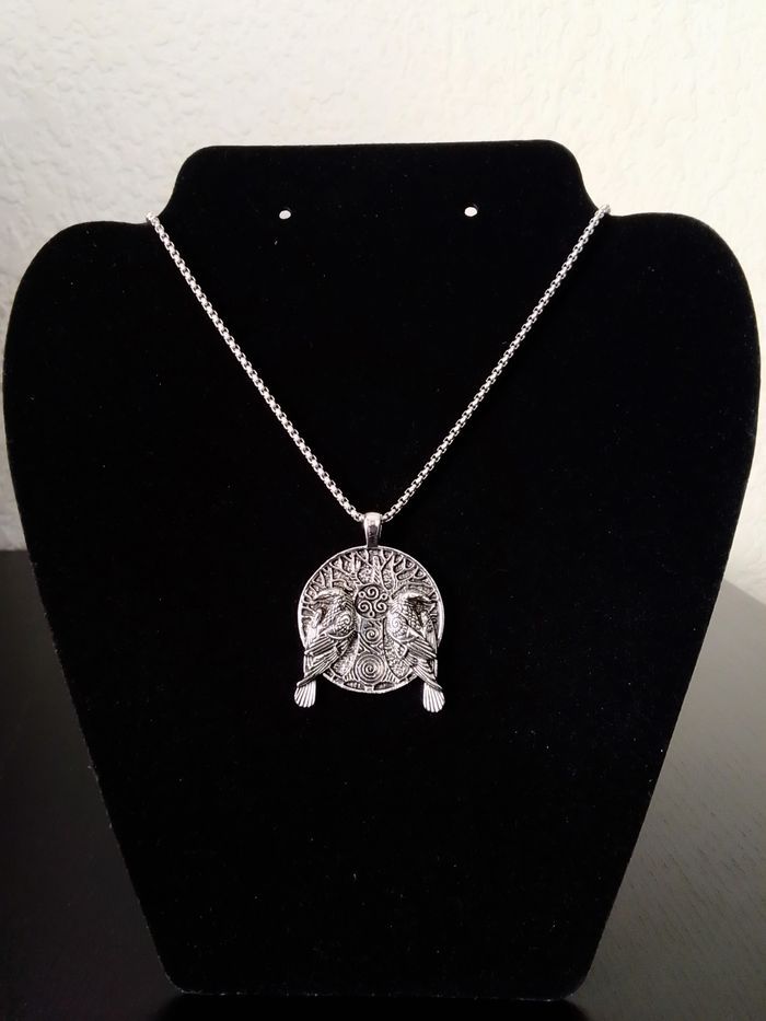 Chaîne + pendentif viking. Pendentif : viking nordique, corbeau, motif : arbre de vie. (viking, protection, spirituel, celtique, idéal cadeau) DESCRIPTIF : Pendentif double face. Couleur : argenté. Taille chaîne : 60 cm Diamètre pendentif : 3,7 cm L * 4,5 cm H. Envoi rapide et soigné.
