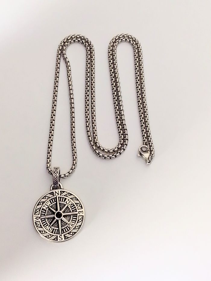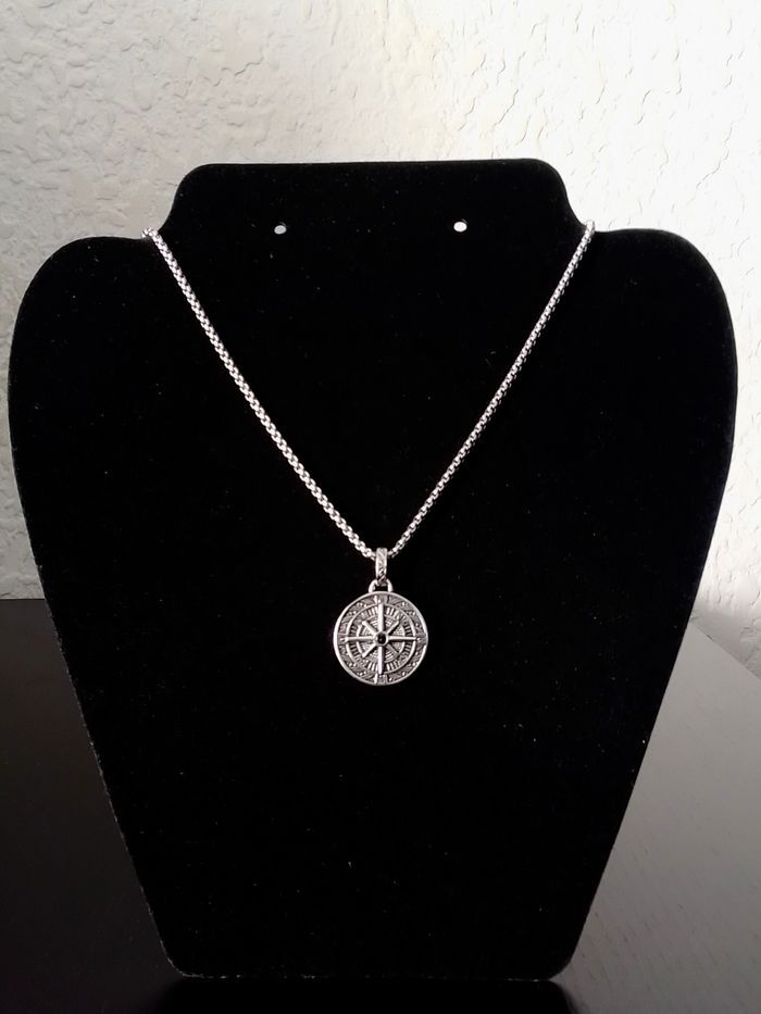 Chaîne + pendentif celtique. Pendentif : boussole (celtique, spirituel, élégant, idéal cadeau) DESCRIPTIF : Couleur : argenté, noir. Taille chaîne : 60 cm Diamètre pendentif : 2,3 cm L * 3,3 cm H. Envoi rapide et soigné.