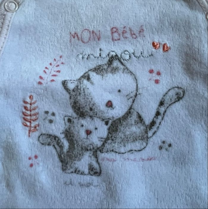 Pyjama velours rose poudré Motif chats Ouverture boutons pressions sur le devant Marque : Absorba Taille : Naissance / 50 cm