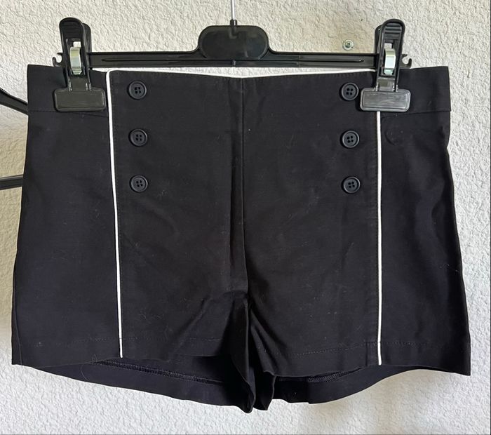 Short taille haute, noir avec bandes blanches, fermeture à l’arrière. Taille 34, très peu porté, en très bon état.