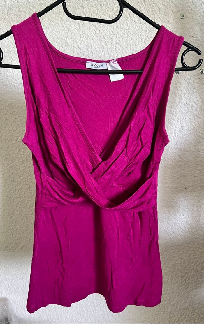 Haut débardeur cache cœur rose fuchsia. Taille 34/36, en très bon état.