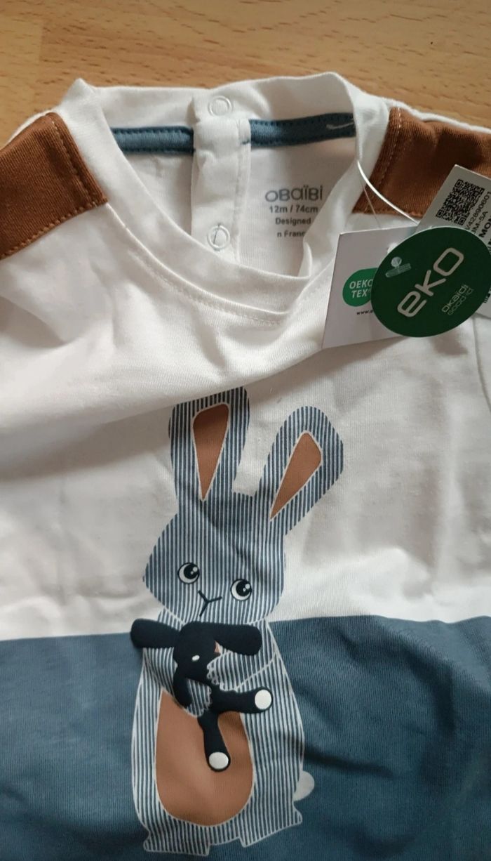 Ensemble garçon 12 mois - Tshirt Obaibi neuf avec étiquette - pantalon TAO en excellent état