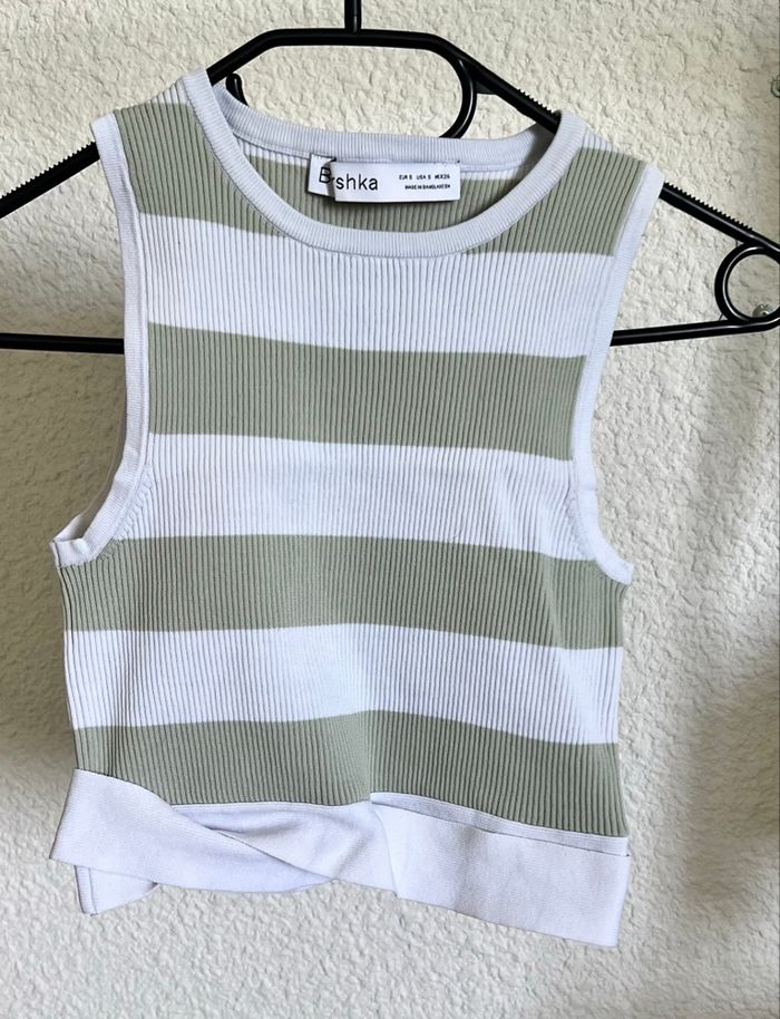 Top court vert et blanc, taille S, jamais porté.