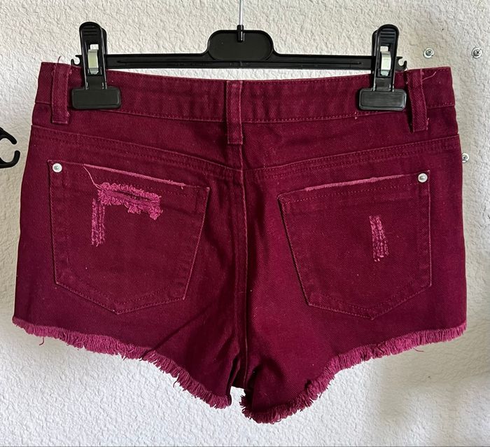 Short en jean « troué », bordeaux. Taille 34, en très bon état, très peu porté.