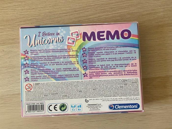 A partir de 4 ans, avec des cartes qui brillent Il manque 1 paire mais sinon le jeu est comme neuf #memo #memory #clementoni #memoclementoni #licorne #jeuenfant #jeudesociete #jeudesocieteenfant #jeuxdesociete #divertissementenfant