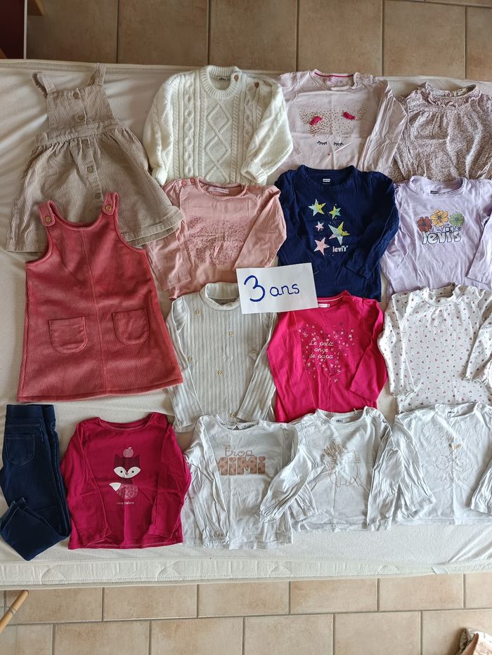 Lot 3 ans avec robes velours, t-shirts, pull et jean