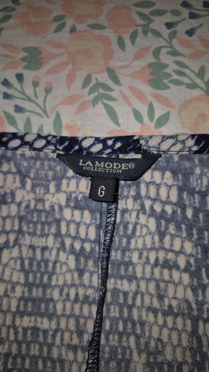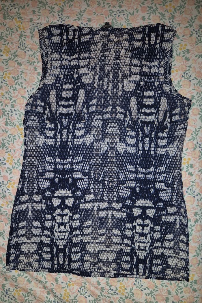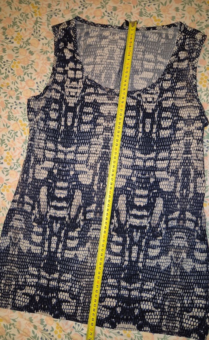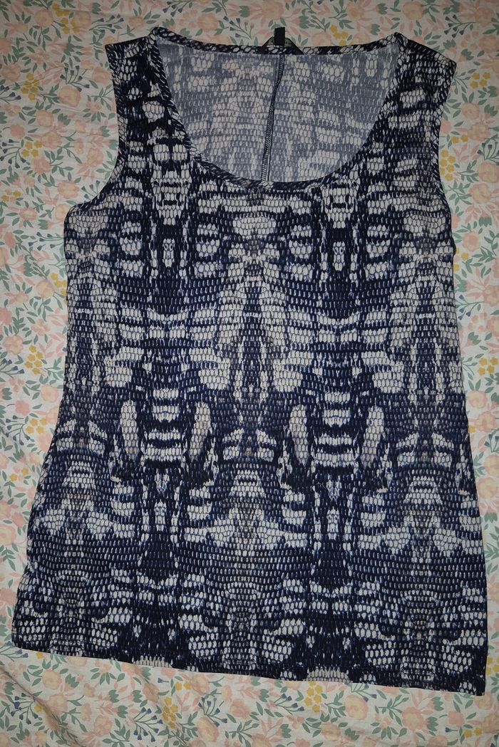 Débardeur Imprimé Serpent Bleu/Blanc Marque: La mode Selection Taille: L (mais ça taille aussi M) Très bon état, quasiment pas porté, mais etiquette coupée
