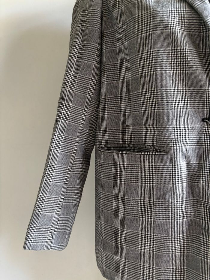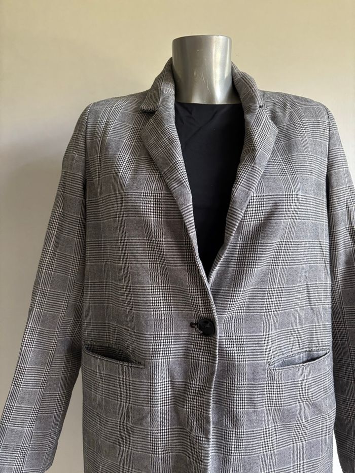 Blazer long à carreaux 🖤🤍 Boutons sur le devant, coupe style manteau. Épaulettes pour une jolie structure.