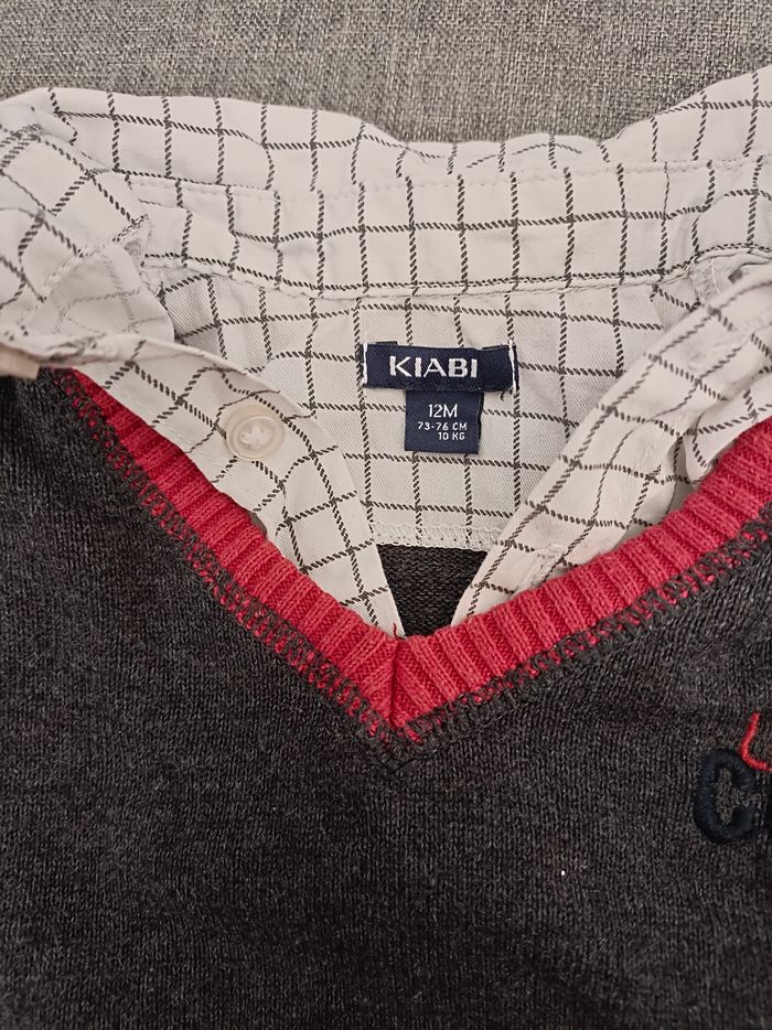 Vends un ensemble en 12 mois Avec un pantalon (jean) + pull avec chemise intégrée Ensemble de la marque kiabi