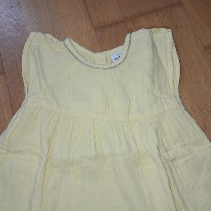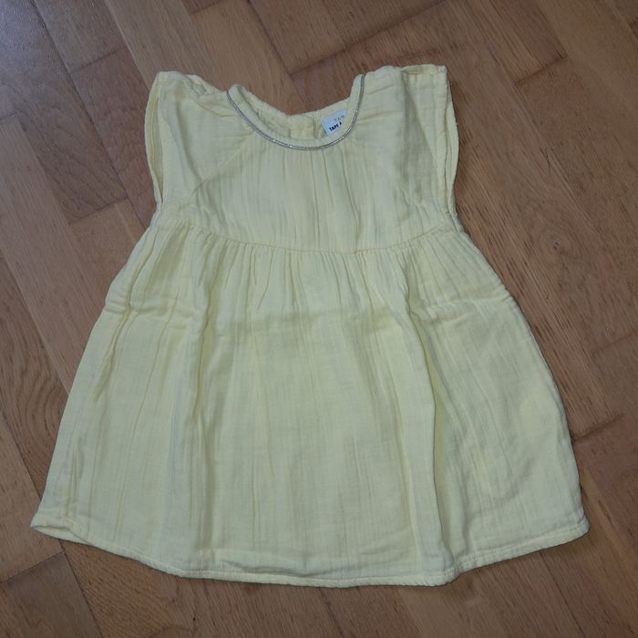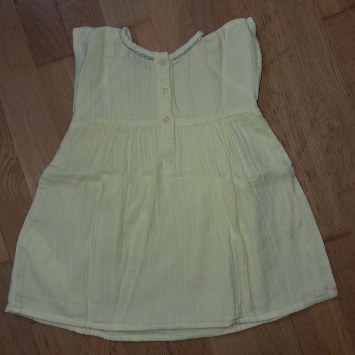 Jolie robe jaune poussin, sans manches, col arrondi, boutonnée au dos Taille 6 mois