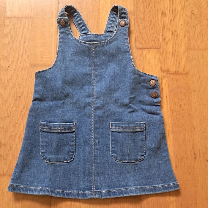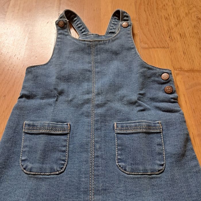Jolie robe en jean à bretelles, 2 poches devant, ouverture sur le côté avec 2 boutons Taille 6 mois 68 cm