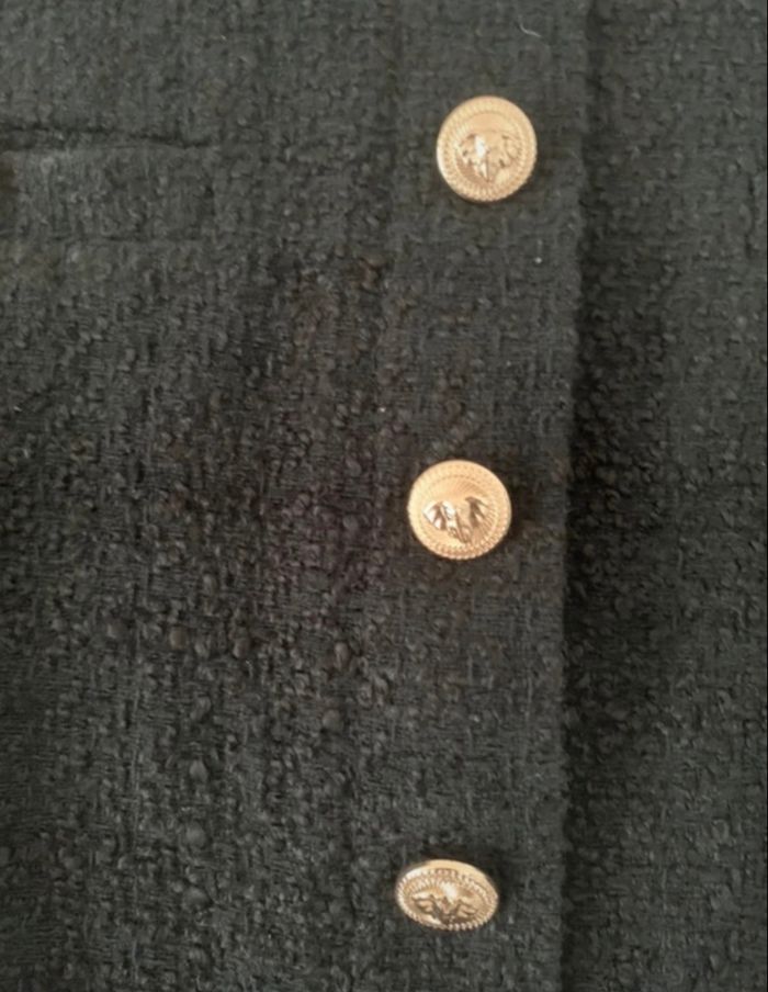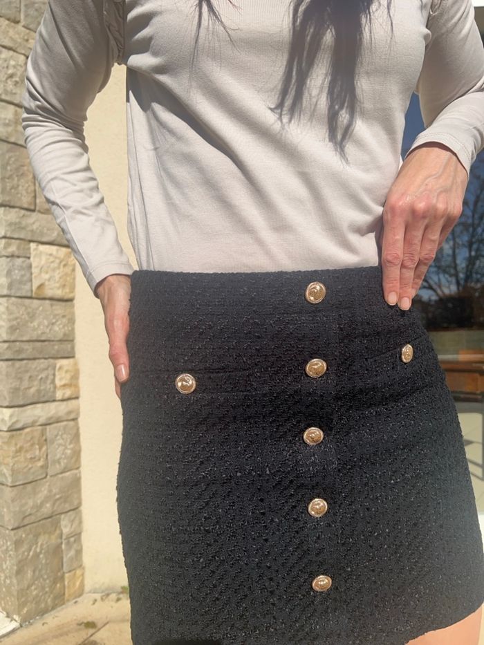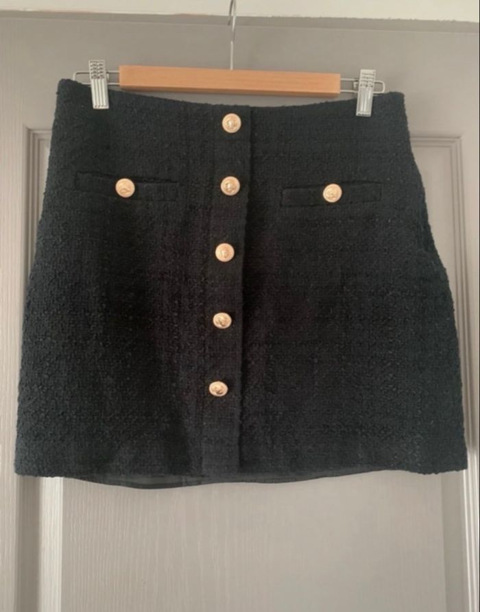 Jupe Mango en tweed noir Boutons dorés (motif éléphant)