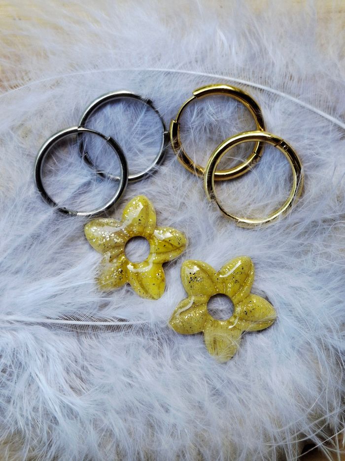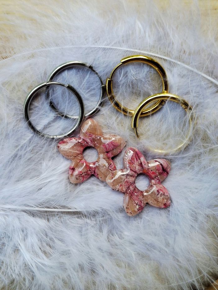 Paire de B.O au choix. Matière pâte polymere et résine. Travailler a la main. Chaque pampille est unique. Pampilles avec créoles 5 euros Pampilles seul 3 euros