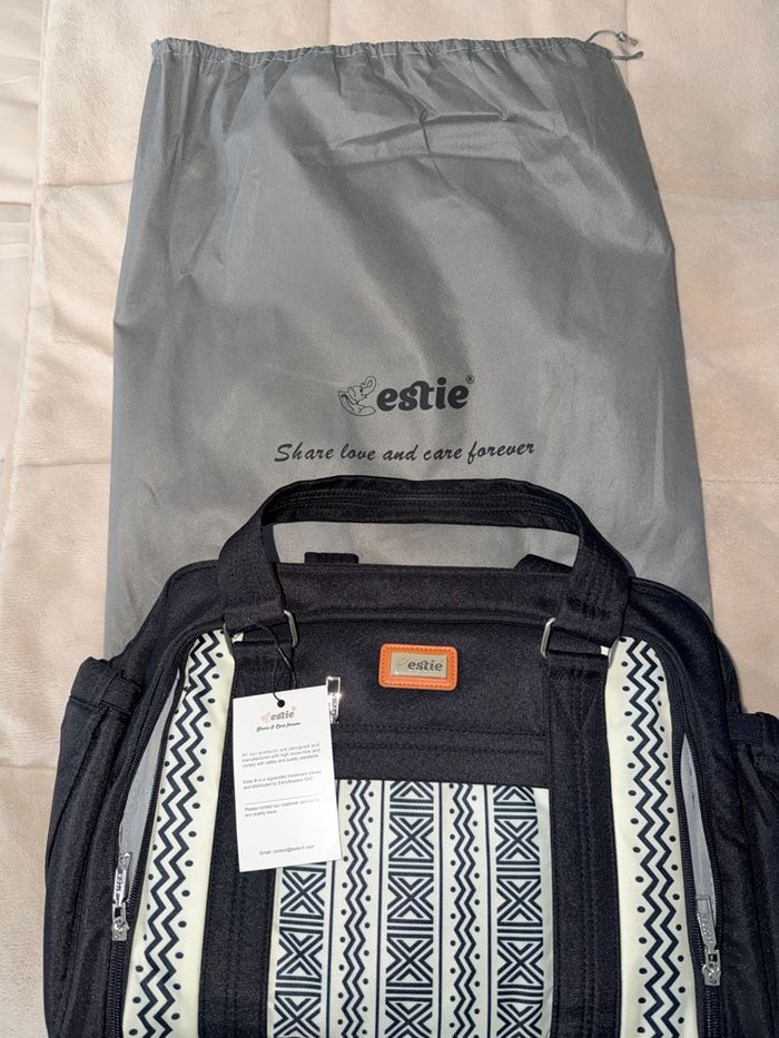 Spacieux – un sac à langer avec une bandoulière spacieuse et pas mal de poches pour rassembler toutes les choses utiles pour bébé. Deux compartiments avec : des poches isothermes pour biberons, sacs à couches et lingettes, une poche vêtements propres et sales. Comfort et résistance : sac bandoulière pour grossesse en tissu polyester léger et imperméable. La doublure, les coutures et les finitions confèrent aux sacs une grande durabilité et ne s'effilochent pas avec le temps. Les bretelles épaisses et rembourrées offrent un confort lors de vos déplacements. Les 2 poignées supérieures offrent une alternative en facilitant le transport à la main. Pratique et élégant : facile à nettoyer, ergonomique, grand volume et accessoires inclus. Ce sac à langer Estie peut être utilisé comme sac à bandoulière ou sac à main, accroché à la poussette ou accroché à la valise de voyage et peut également être utilisé après l'enfance. Jamais utilisé valeur magasin 110 e.envoie possible