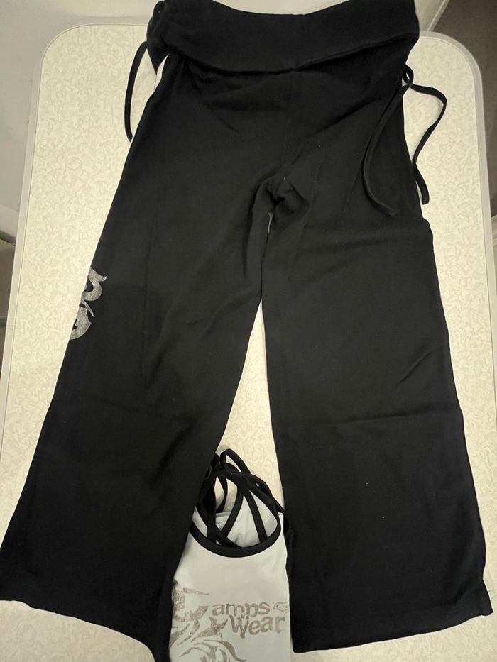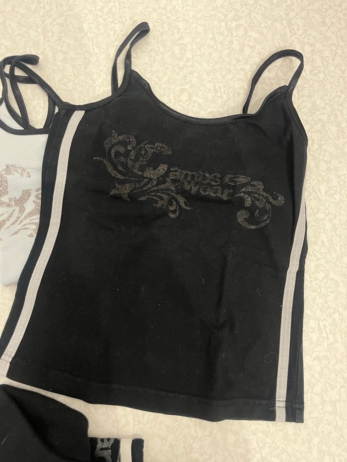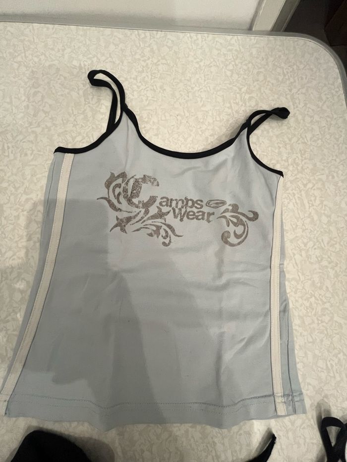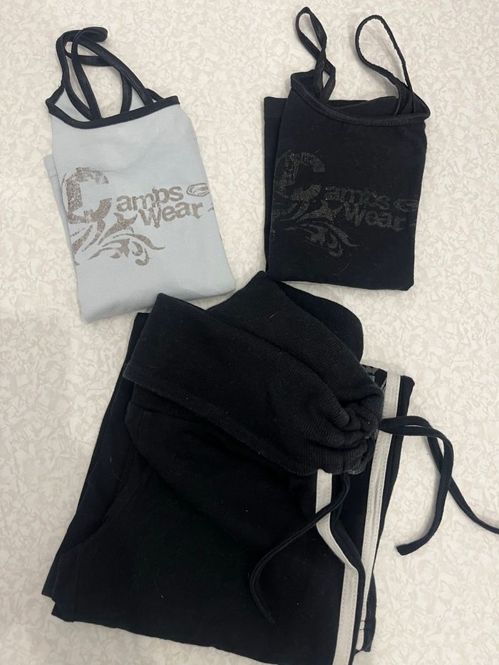 Ensemble de sport fille taille 8 ans comprenant : * 1 pantalon noir avec bandes sur le côté, en très bon état (porté une seule fois) * 2 débardeurs (noir et bleu ciel), en bon état (légères traces d’usure visibles sur le logo) Tenue confortable, idéale pour le sport ou la détente. État : Très bon état (pantalon) / Bon état (hauts) Taille : 8 ans Marque : Camp’s Wear/ united Prix : 7 € le lot