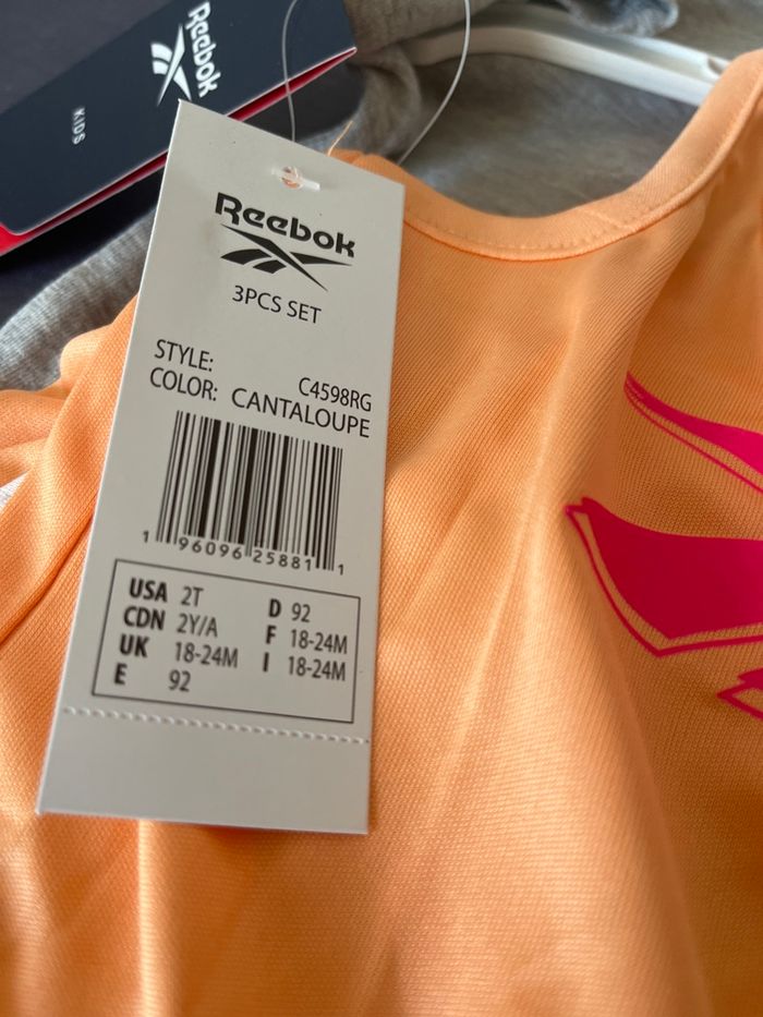 Ensemble 3 pieces neuf reebok avec 1 debardeur 1 teeshirt et 1 short