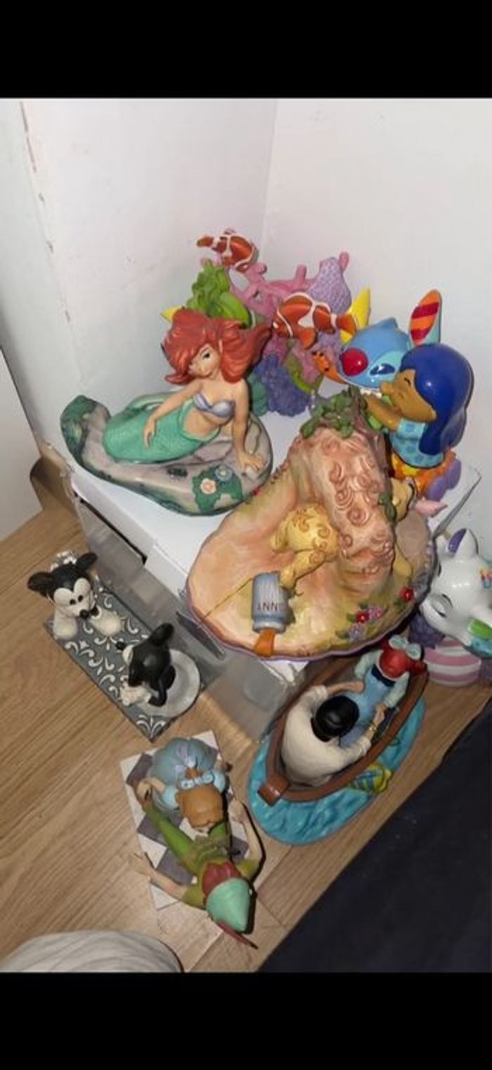 Premier lot : que ce qu’il y’a dans le carton. Le reste pour le mois de juin. Donc le carton comprend : 2 fée clochette britto ( une grande et une petite ) dans l’état , 1 snowglobe dans l’état, 1 Tiana grande dans l’état. Vente de Ben. Pour juju
