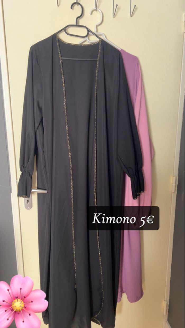 Bonjour je vend un lot de 4 robes abaya à 10€ l’unité et un kimono noir à 5€ Les tailles correspond à une taille S/M Possibilité de prendre l’ensemble du lot, et prix négociable 👍🏻 Idéalement à venir chercher sur place et paiement en espèces