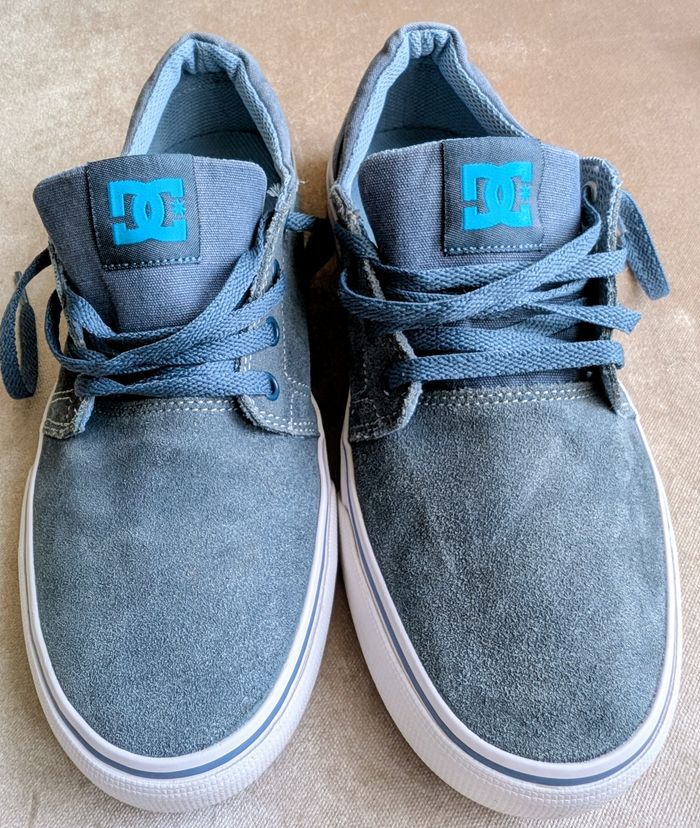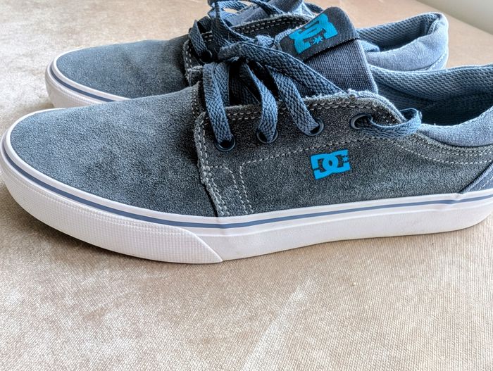 Baskets DC Shoes originales en super état. Modèle en daim gris et bleu clair, très robuste et confortable. Ta ille 38