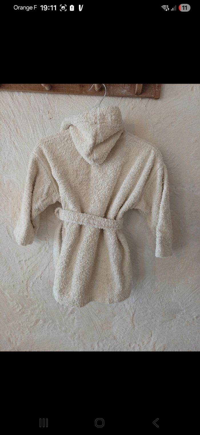 Peignoir avec capuche et ceinture. En bon état mais reche.