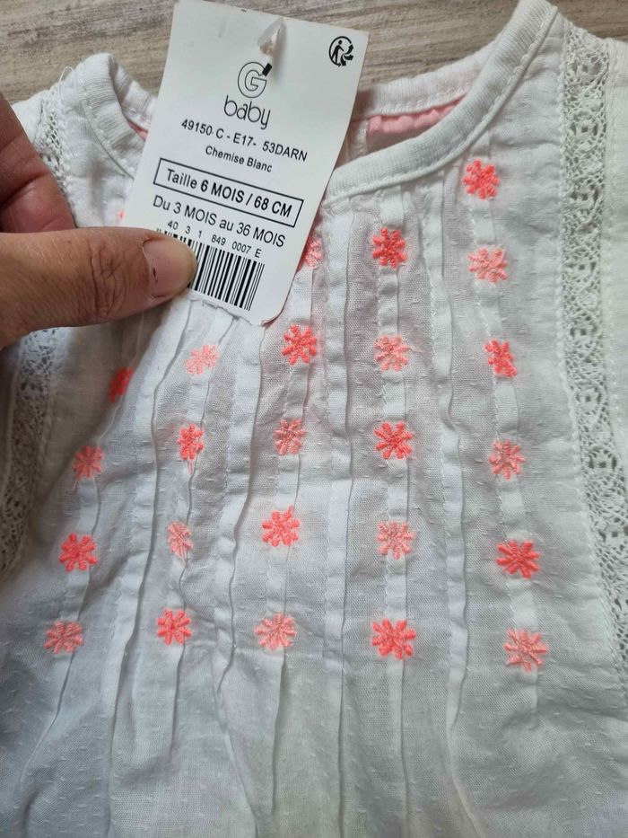 Blouse rose corail à volants Tape à l'Œil – 12 mois (74 cm)