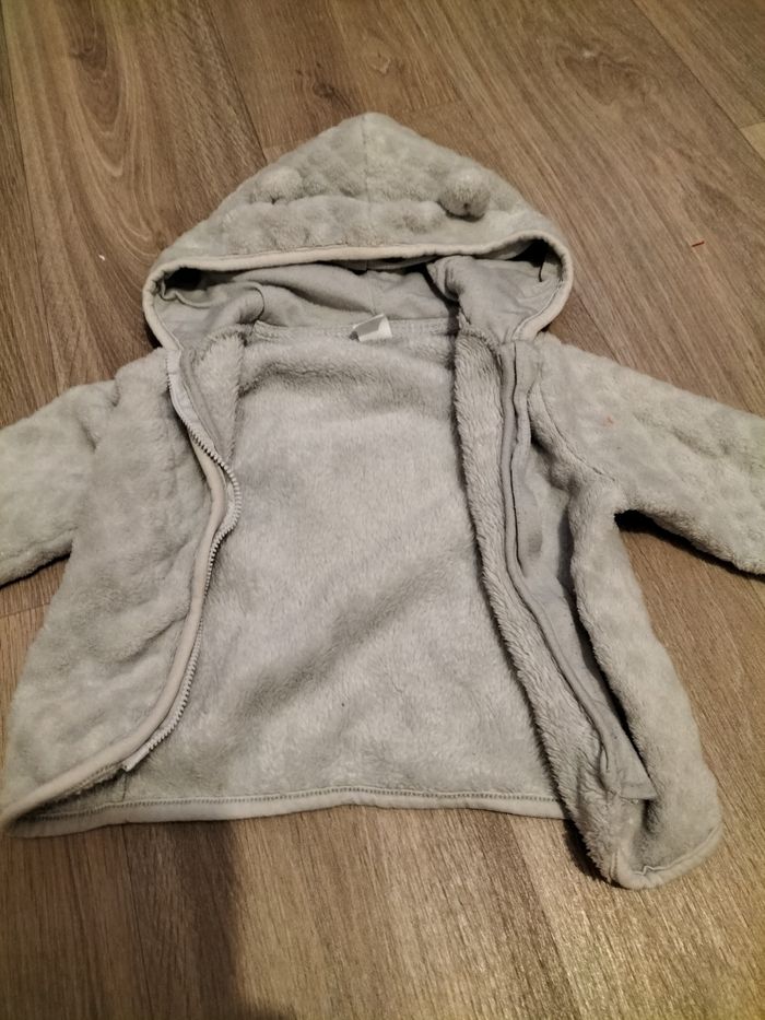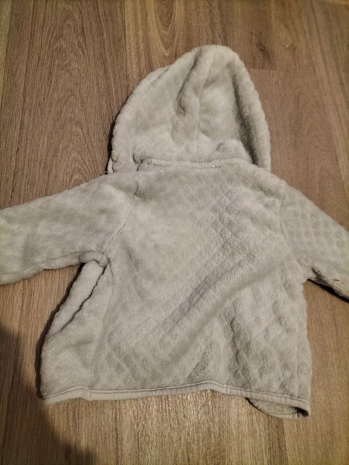 Vend un gilet avec capuche et fermeture. Il est chaud . Il est polaire.