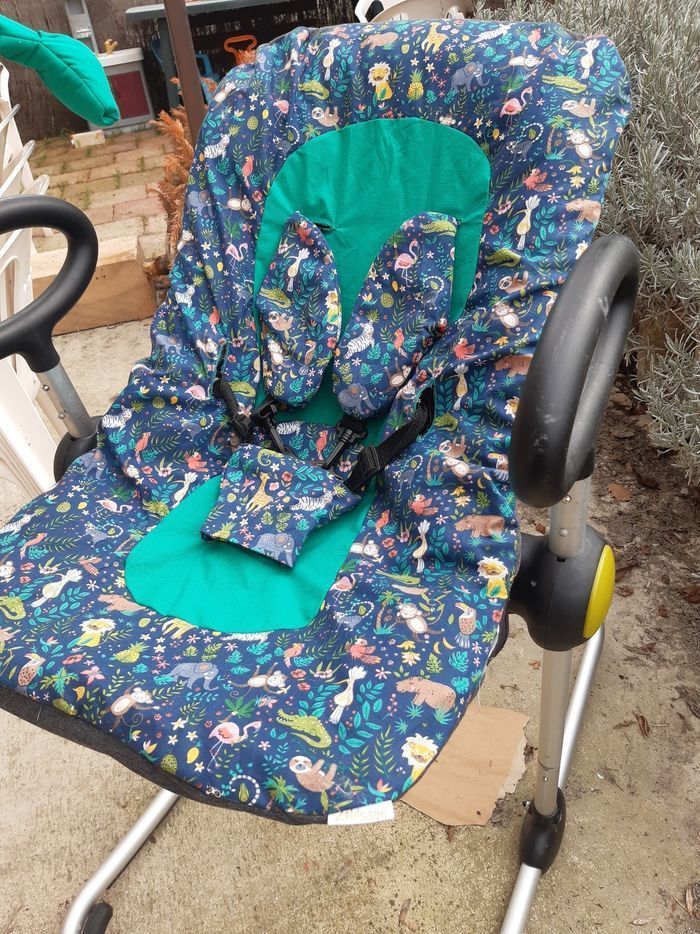 Housse qui s'ajoute à l'assise d'origine béaba imprimé animaux / vert émeraude Accessoires sangles et entre jambe assortis Lavable en machine à 30° Page fb Zol&Saan confections Insta zolsaan Zolsaanconfections.com Lien du modèle avec coussin réducteur 👇 https://beebs.app/fr/p/3297043-housse-transat-up-and-down