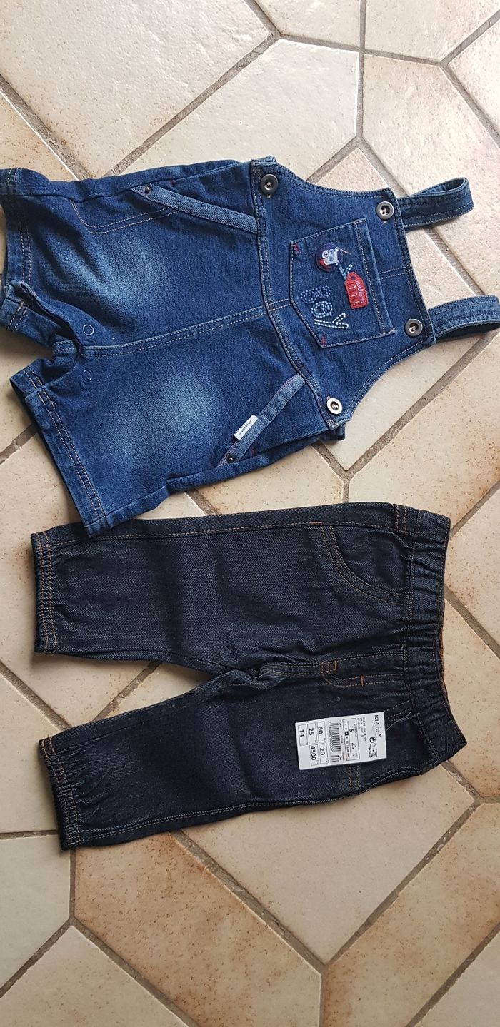 1 salopette en jean avec pression entre jambe et 1 Jean neuf avec etiquette kiabi