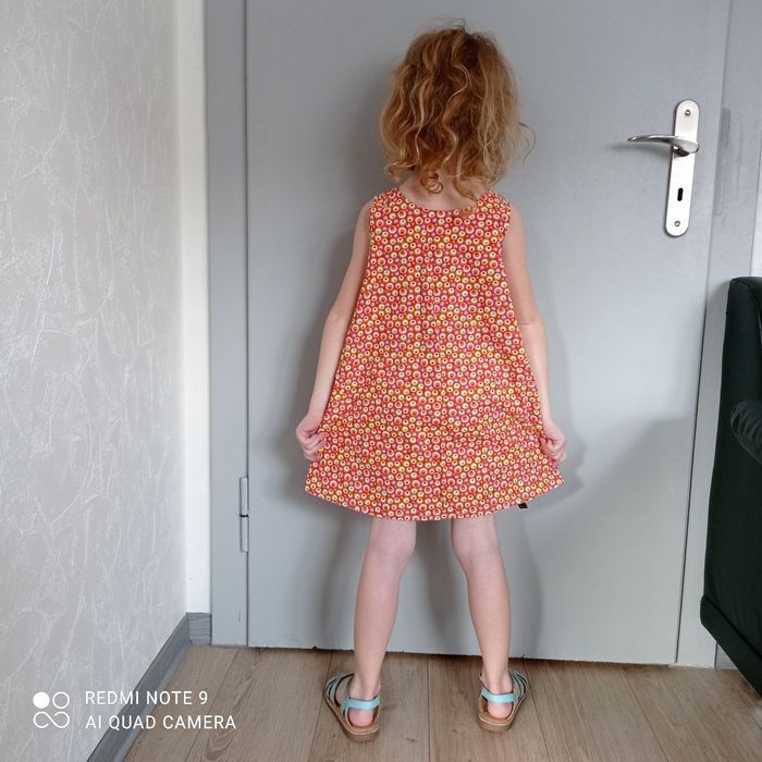 Un côté motif petites poupées asiatiques, un côté motif ronds roses et orange. Taille 5/6ans.