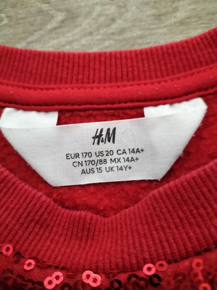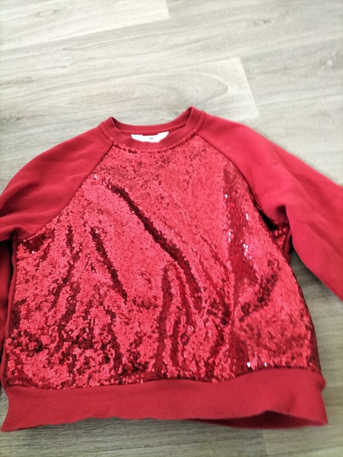 Vend un pull rouge avec paillettes devant . Il est propre, ni tachée ni déchirée, ni trouée