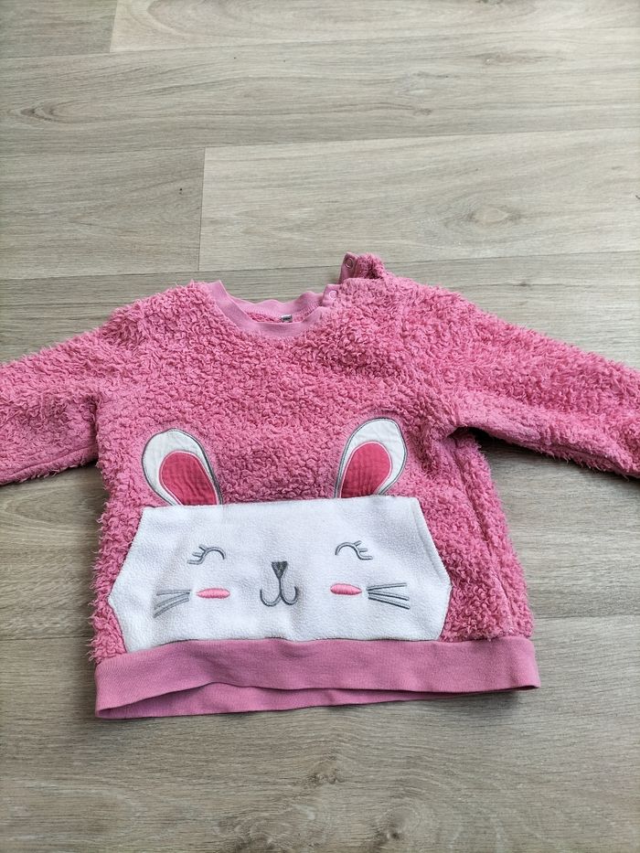 Vend un pull avec des poches devant et motifs lapin . Il est propre, ni tachée, ni déchirée. Pression sur le côté