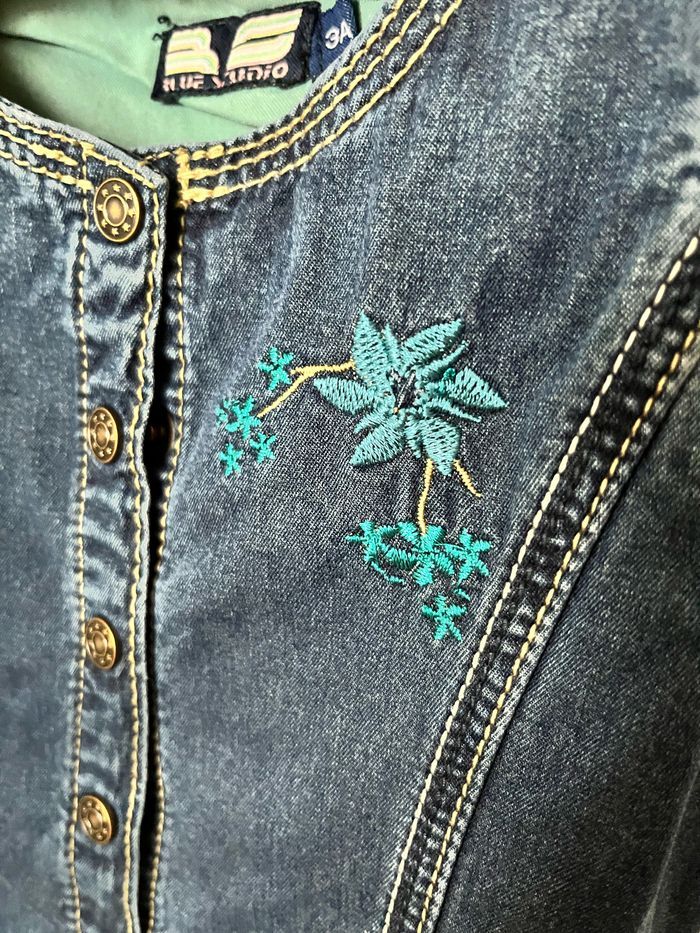 Robe denim très bon état Blue Studio avec broderie à fleurs Taille 3 ans #lot #reductionsurleslots #réduction #puericulture #bébé #beebs #venteenlot #vêtement #vetementbebe #ventebeebs #robe #robeenfant #robedenim #bluestudio #robeenjean #lotdevetements