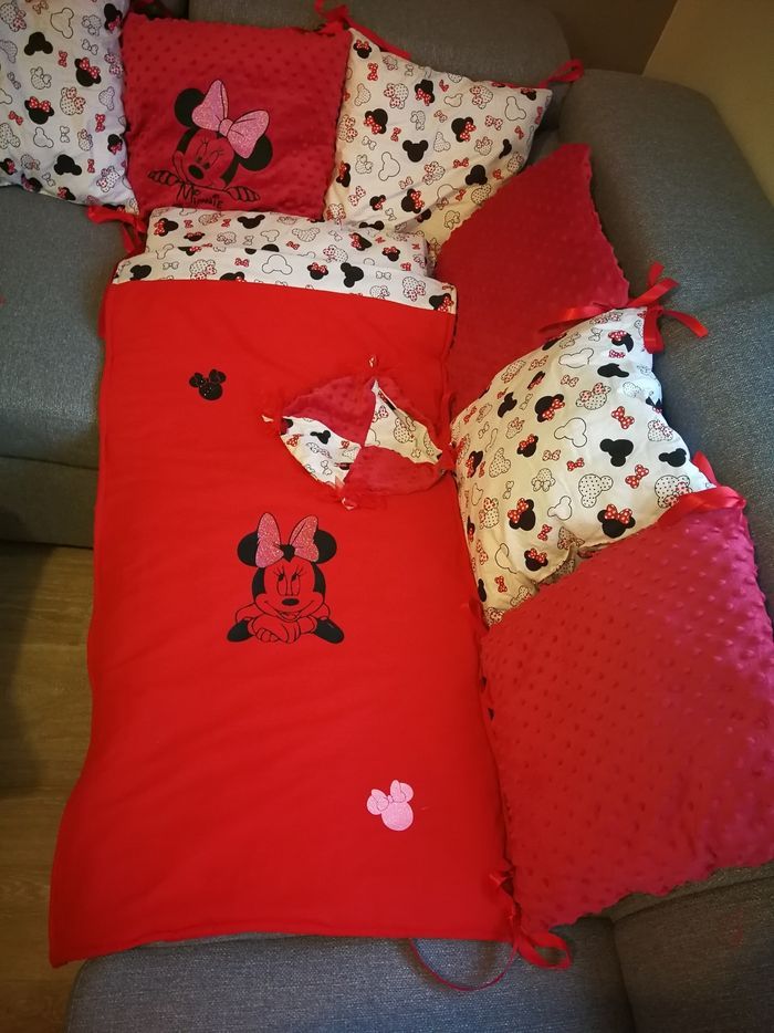 Tour de lit en coussins minnie et couvertures assorties