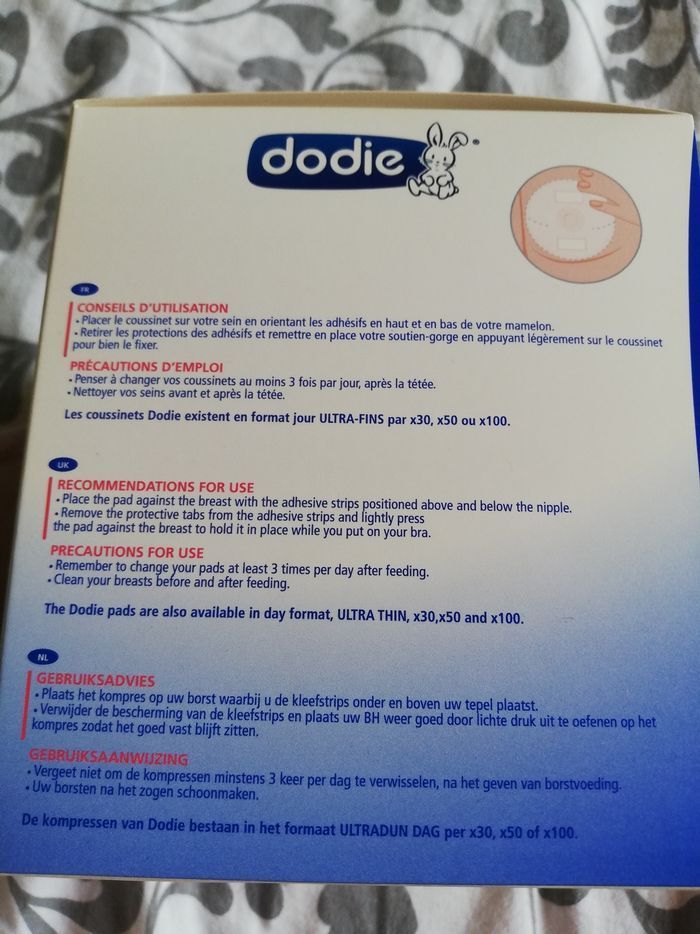 Vends une boite neuve de 30 coussinets d'allaitement nuit de marque dodie.