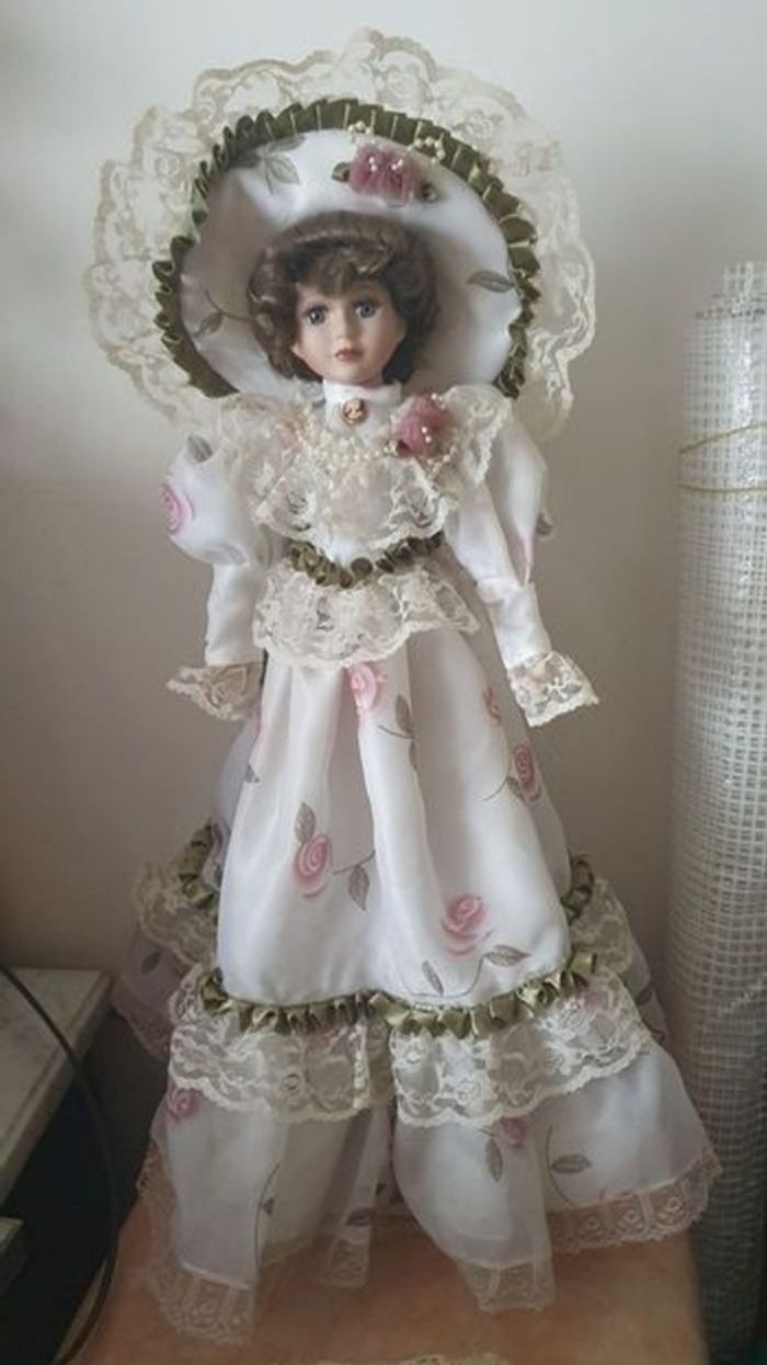 Poupée de collection 50 cm Sur son socle pour tenir debout Bon état décor