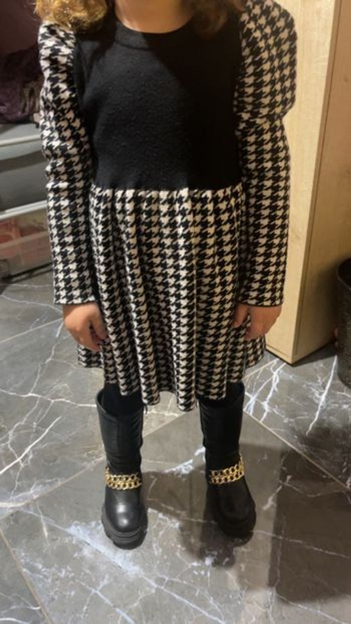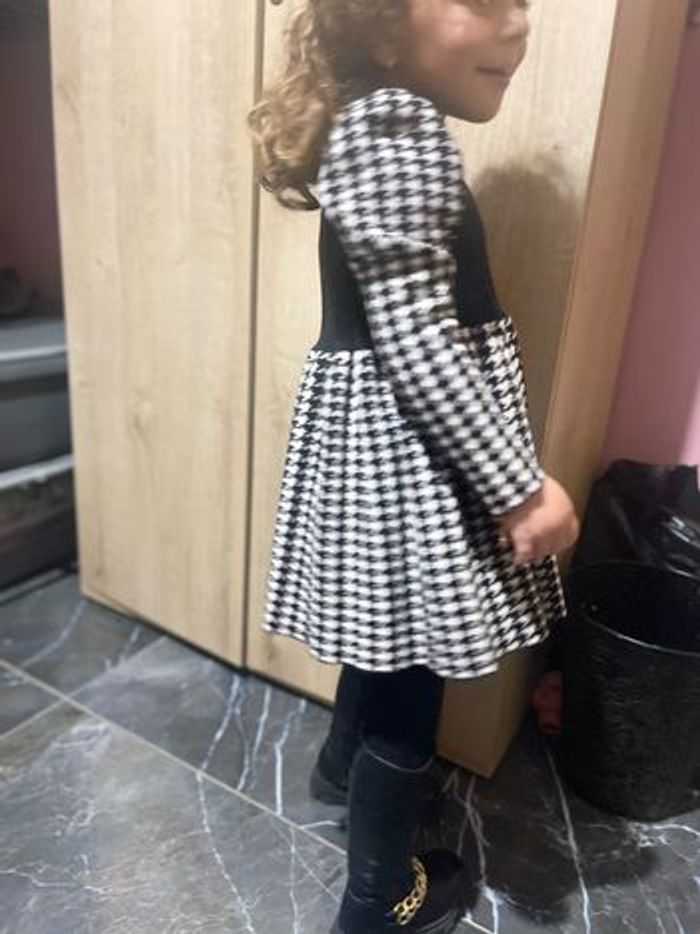Jolie robe en laine, taille 4ans, déjà mis bon état à 10€ je baisse le prix à 7€ Fille Robe pull à pied-de-poule à manches bouffantes