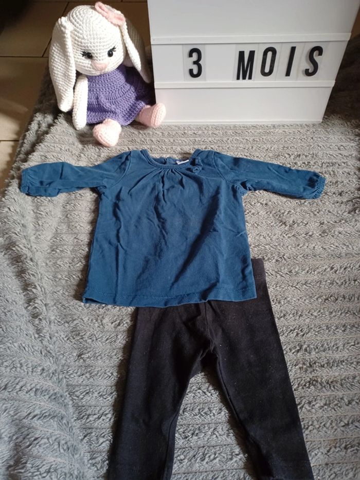 Ensemble noir et bleu Très bon état Taille 3 mois
