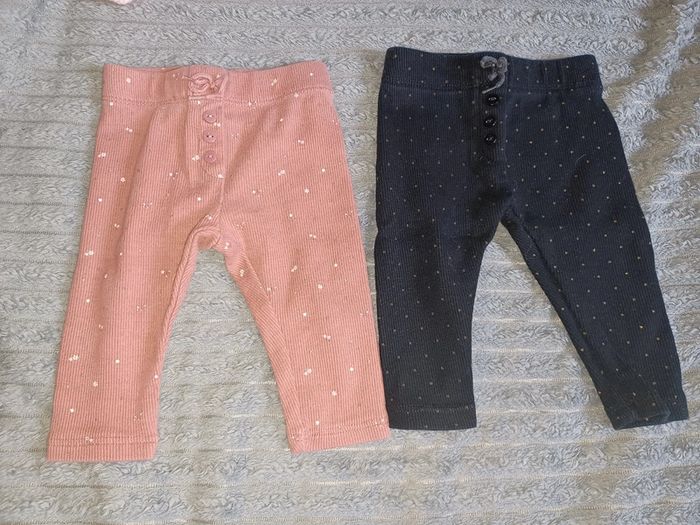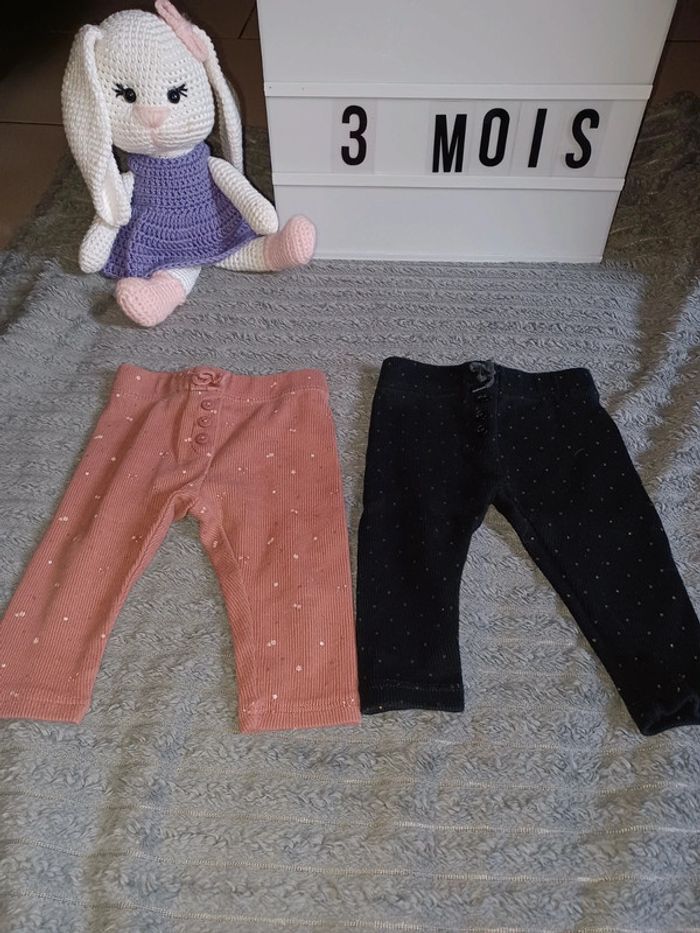 Lot de 2 leggings côtelé rose a fleur noir à point Très bon état Taille 3 mois