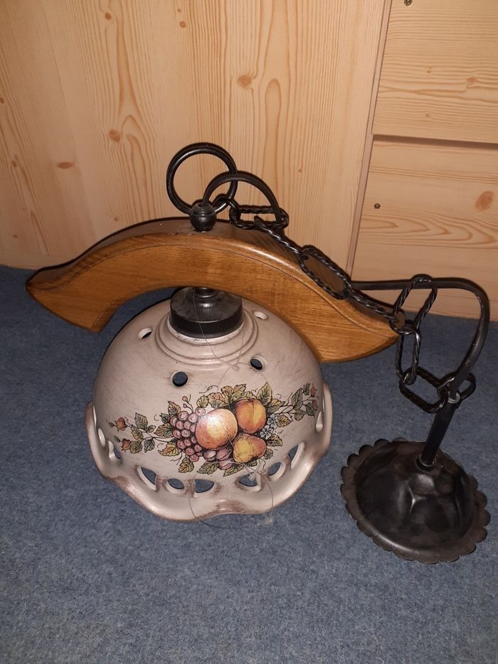 Lustre 1 branche bois et porcelaine 30 euros il y en a 3 de disponible