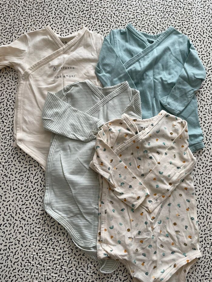Lot body mixte manches longues 1 mois + bonnet - Kiabi - idéal naissance