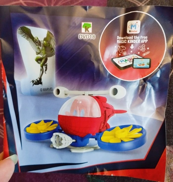 Bonjour, Vends avion Spiderman de la collection Maxi Kinder Surprise de 2020. Neuf, monté une fois lors de l'ouverture et remit ensuite dans sa boîte, par contre le personnage cartonné, Vautour, est légèrement déchiré sur un côté (voir dernière photo) Pour toutes questions n'hésitez pas à me contacter