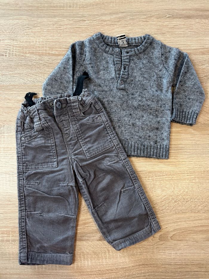 Ensemble en 9 mois composé d’un pull ainsi que d’un pantalon tape à l’œil. En très bonne état