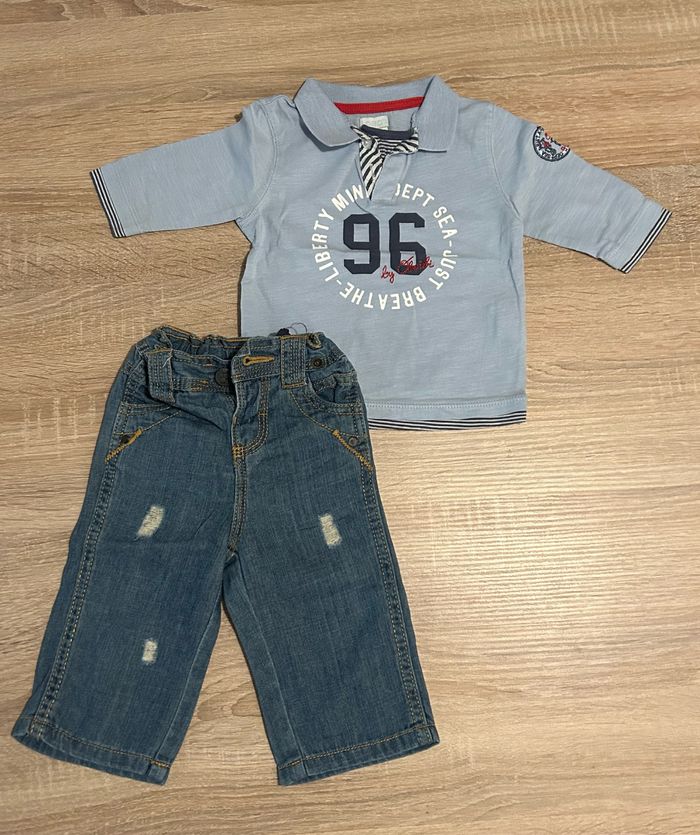 Ensemble 6 mois comprenant un polos de marque Obaïbi et d’un jeans de marque tape à l’œil. En très bonne état