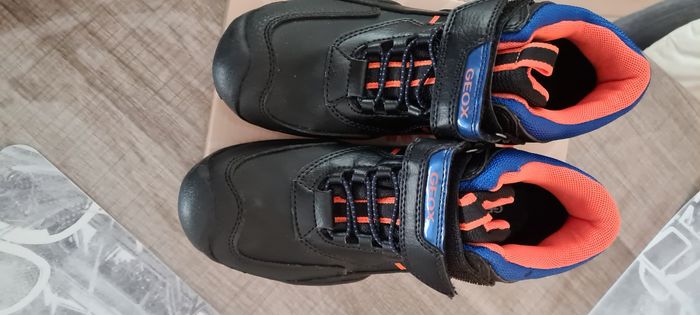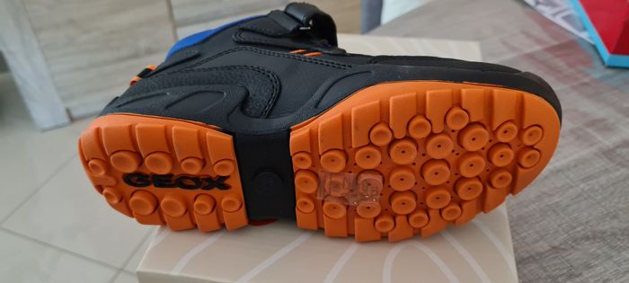 Chaussures Geox imperméables, neuves, jamais portées (adaptées pour des pieds fins) Couleur : orange et noir Pointure : 34